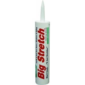Big Stretch is perfect for many interior and exterior applications, including: windows, doors, siding, vents, soffits, eaves, and baseboards. It is also good for crown molding and sound proofing interior walls. Big Stretch should not be used or specified in areas of water submersion, where frequent or prolonged puddling occurs, or in areas of high foot or vehicle traffic (i.e., swimming pools, tubs, showers, sidewalks, driveways, highways, and patios). Not for use on roofs, where prolonged dampness or possible submersion may inhibit curing.